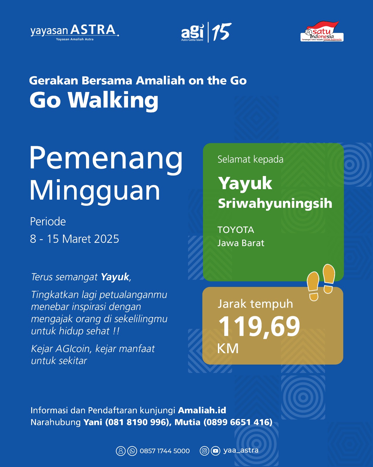 6 bulan yang lalu Publik👟 Pemenang Mingguan Amaliah on the Go-Go Walking AGI 15 (08 Maret - 15 Maret 2025) 👟