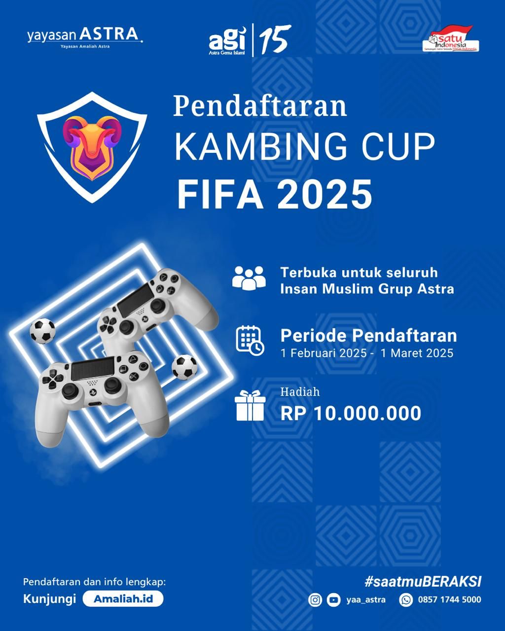 Kali ini kita hadir dengan eSport baru yaitu EAFC/FIFA 25 di Astra Gema Islami 2025 tahun ini dengan total hadiah Jutaan Rp.10.000.000, dan untuk menambah keseruannya, pertandingan akan dilakukan 2 vs 2!!