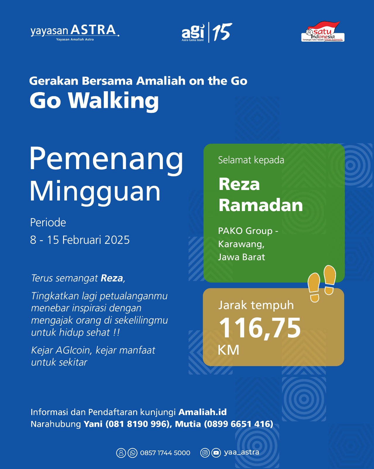 8 bulan yang lalu Publikπ Pemenang Mingguan Amaliah on the Go-Go Walking AGI 15 (08 February - 15 February 2025) π
