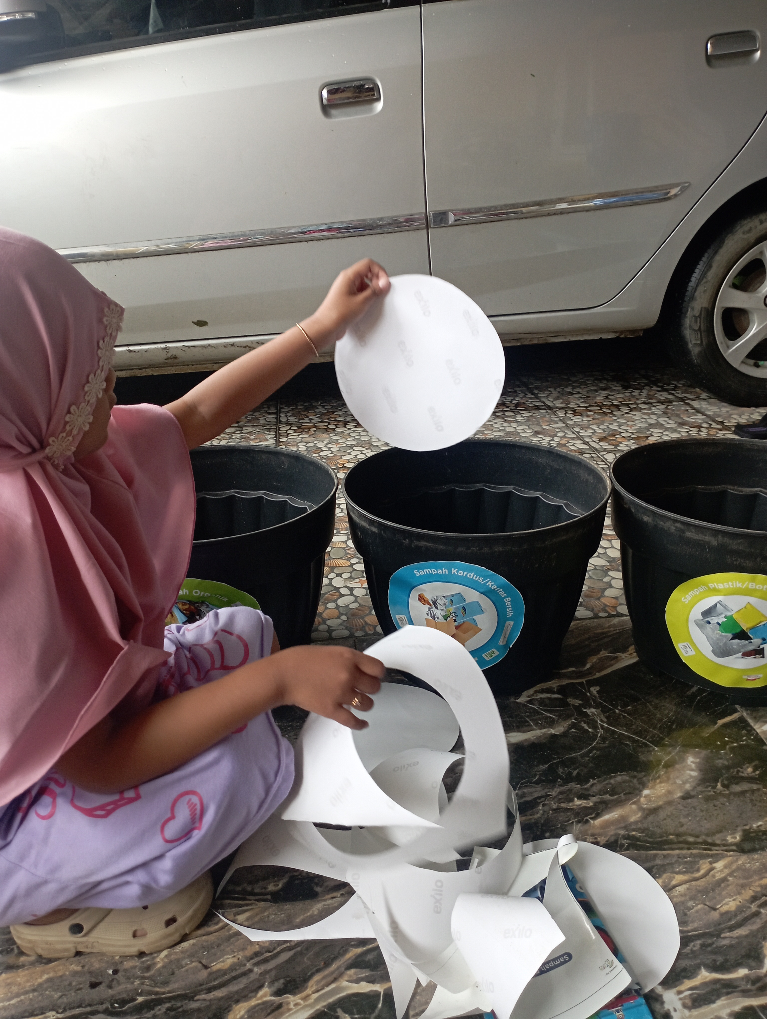 Ananda Shaqueena mengenal jenis-jenis sampah.