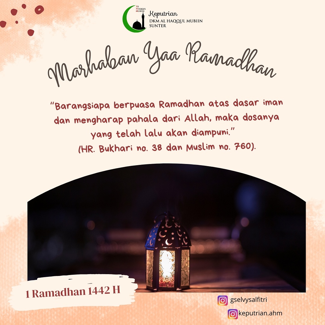 “Barangsiapa berpuasa Ramadhan atas dasar iman dan mengharap pahala dari Allah, maka dosanya yang telah lalu akan diampuni.” (HR. Bukhari no. 38 dan Muslim no. 760).