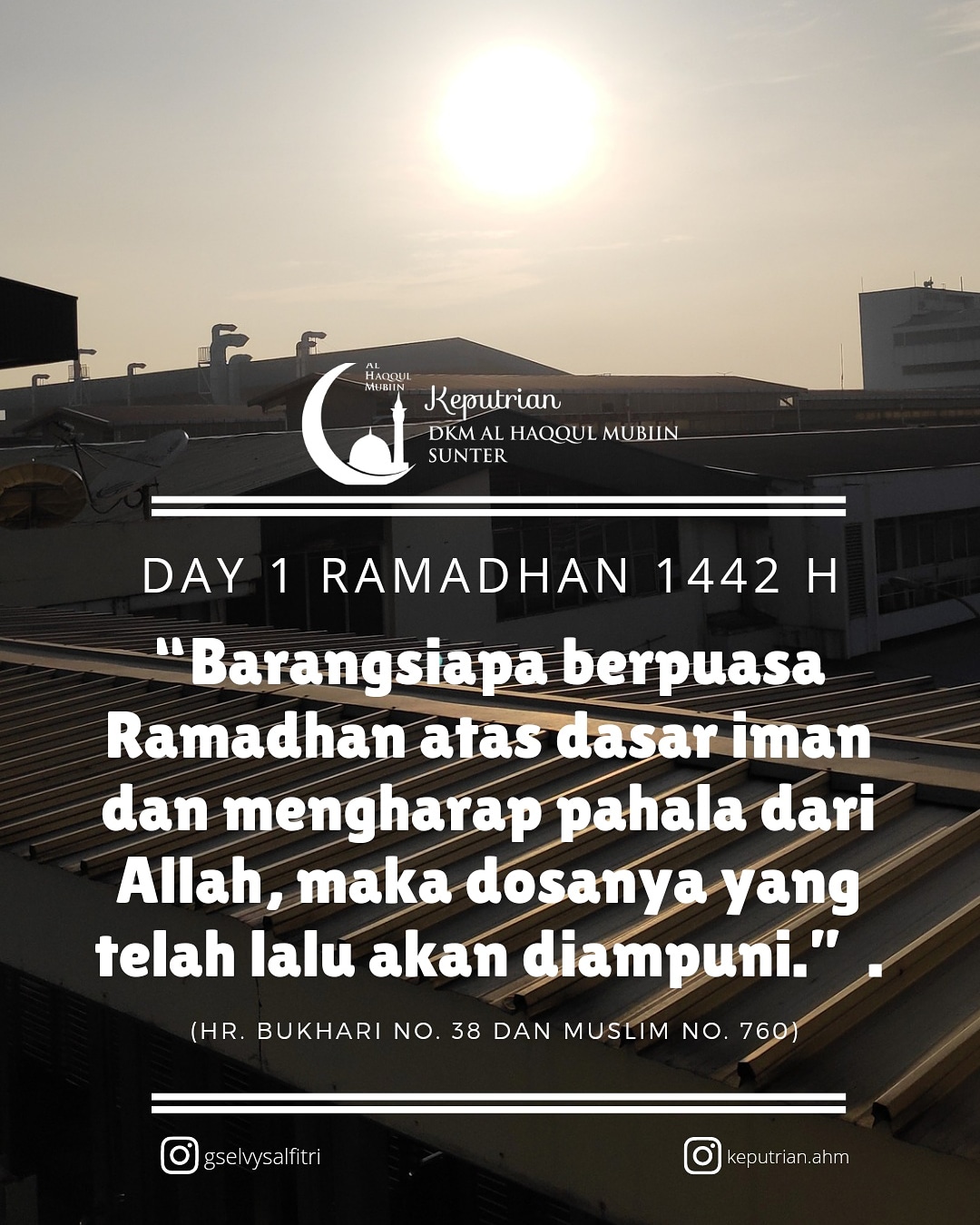 “Apabila Ramadhan tiba, pintu surga dibuka, pintu neraka ditutup, dan setan dibelenggu.” (HR. Bukhari no. 1899 dan Muslim no. 1079). -