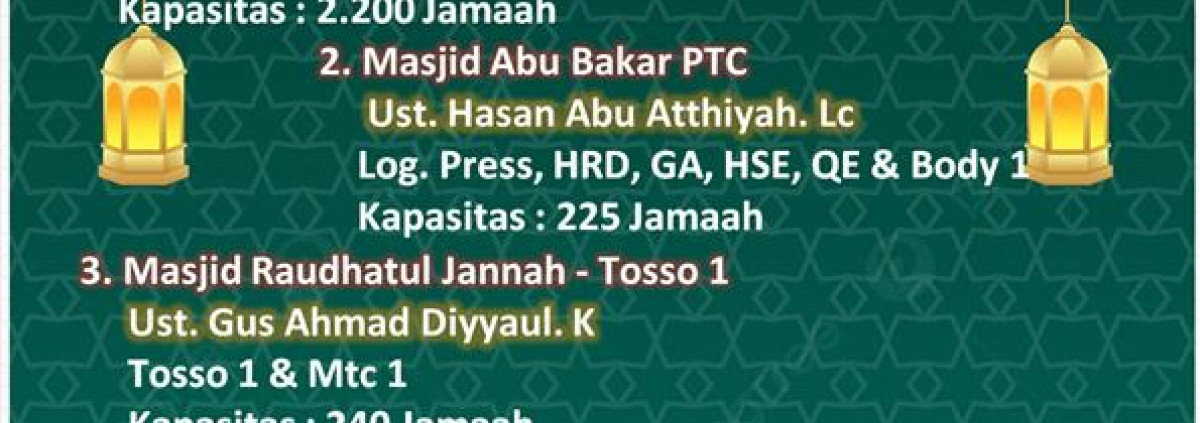 Setiap pekan DKM Nurussalam mengkoordinir 5 masjid besar di Assy Plant.