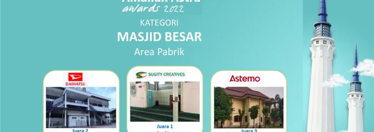 Meliputi apa saja sih Sahabat Daihatsu ? Hubungan dengan jamaah manajemen perusahaan dan YAA, Melakukan kegiatan sosial dan kesukarelawanan, Pengelolaan administrasi dan keuangan, Pengelolaan fasilitas dan infrastruktur,serta Kegiatan menjalankan peribadahan, Dalam hal ini Sahabat Daihatsu yang turut tetrlibat dalam proses penjurian Amaliah Astra Awards adalah Tokoh keagamaan nasional sekaligus Imam Besar Masjid Istiqlal K.H. Nasaruddin Umar, Pemimpin Redaksi Republika Irfan Junaidi, dan pengurus YAA. Inilah Sahabat Daihatsu Pemenang Amaliah Astra Awards 2022 dan salah satu dari 9 kategorinya adalah Kategori Masjid Besar Pabrik Juara I, Masjid An Nur Sugity Creatives, PT Sugity Creatives (Bekasi, Jawa Barat) Juara II, Masjid Nurussalam, PT Astra Daihatsu Motor Sunter Assembly Plant (Jakarta Utara, DKI Jakarta) Juara III, Masjid Sirathal Mustaqiim, PT Hitachi Astemo Bekasi Manufacturing (Bekasi, Jawa Barat) Masjid Nurussalam, PT Astra Daihatsu Motor Sunter Assembly Plant ( P4 ), Meraih Juara III di tahun 2021 dan di tahun 2022 meraih Juara II Terima kasih Management dan terima kasih seluruh karyawan atas partisipasi serta supportnya. Semoga di tahun 2023 ini kita menjadi yang terbaik. Aamiin…..