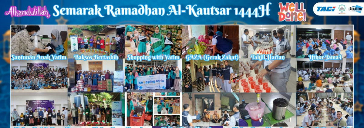 Alhamdulillah Telah Selesai seluruh rangkaian acara kegiatan Mesjid Al Kautsar seperti kajian, Sholat Tarawih, Sholat Jum'at Santunan Anak Yatim, Al-kautsar Got Talent, Bertasbih, Gaza, Shopping ceria,dll.