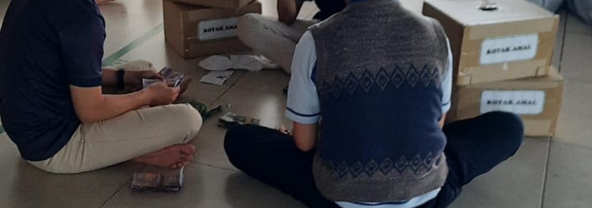 Salah satu kegiatan rutin bendahara DKM al-kautsar setiap bada jumat yaitu hitung uang tromol .