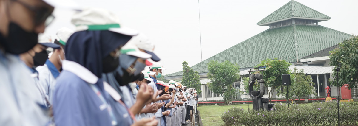 Senyum, Sapa, Salam menghiasi kehangatan berkumpulnya seluruh karyawan di Halaman Gedung TACI Learning Center (TLC)