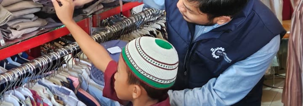 Momen Haru Wisata Belanja DKM PAMA: Relawan Bantu Anak Memilih Baju