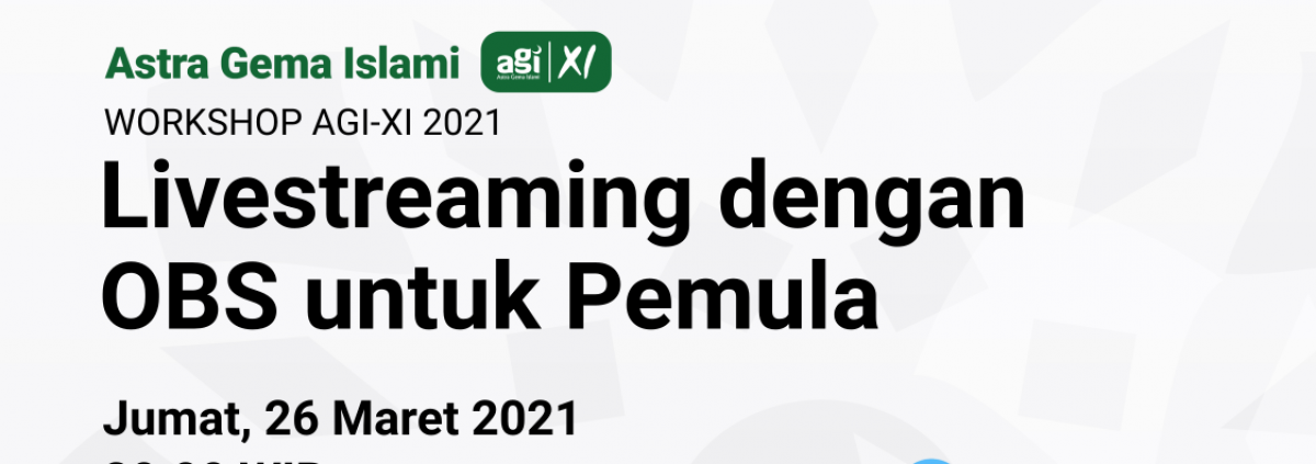WORKSHOP AGI-XI 2021: Livestreaming dengan OBS untuk Pemula Time: Mar 26, 2021 08:00 PM Bangkok Join Zoom Meeting https://us02web.zoom.us/j/87942583187?pwd=eU1zY2MwRHJhejdjZGMzMnNkcWZuZ… Meeting ID: 879 4258 3187 Passcode: AGI