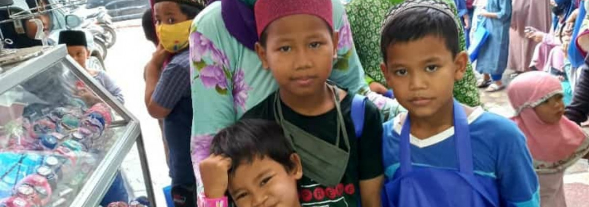 Suaranya bergetar, matanya berkaca. Disaat yg sama, di belakang anak-anak riweuh mencoba kembali baju, rok, celana, sepatu, sandal, jam tangan dan jilbab yang telah mereka beli.