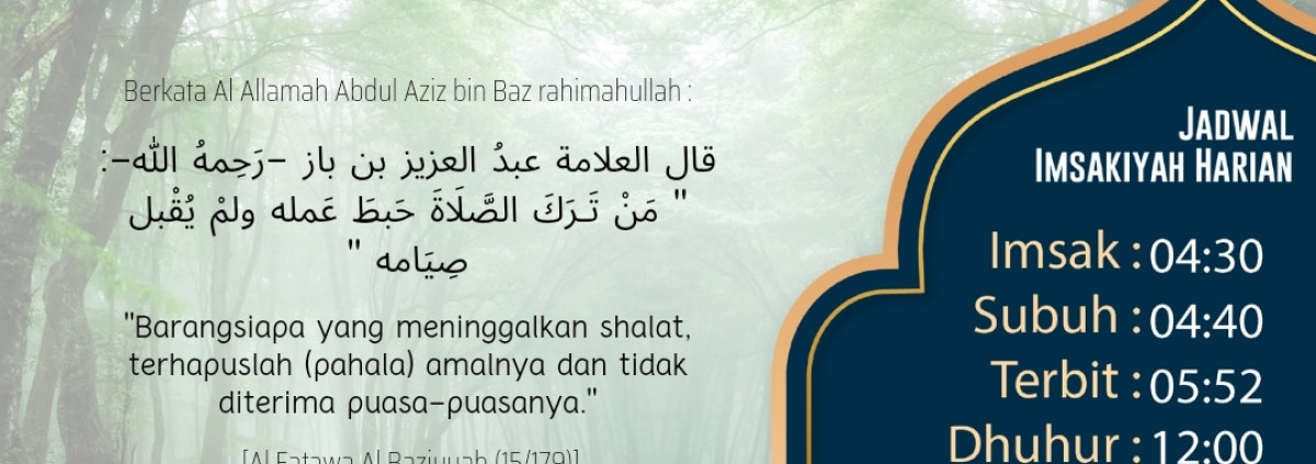 *Senin, 03 April 2023* Tidak akan diterima puasanya orang yang tidak sholat. Wallahu'alam. https://www.instagram.com/p/CqjH2sqylry/?igshid=YmMyMTA2M2Y= *DKM ADIWIRA PLASTIK* IG : @dkmawp FB : Cinta Masjid AWP YT : DKM AWP