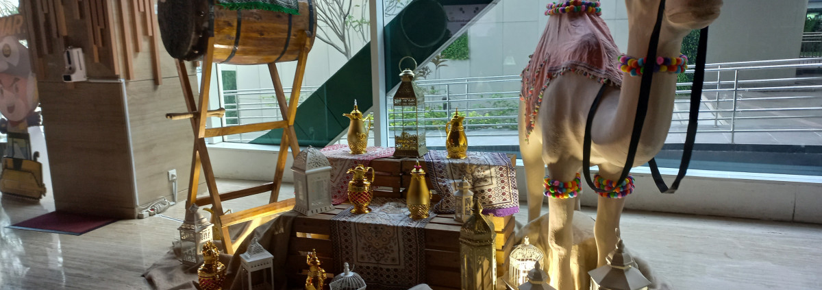 Kabar Ramadhan Masjid Al Furqaan PTUT, Jakarta. Selasa, 04 April 2023, tidak seperti biasanya di Lobby UT terdapat sesuatu yang berbeda. Ada spot di samping eskalator di berikan dekorasi nuansa timur tengah.