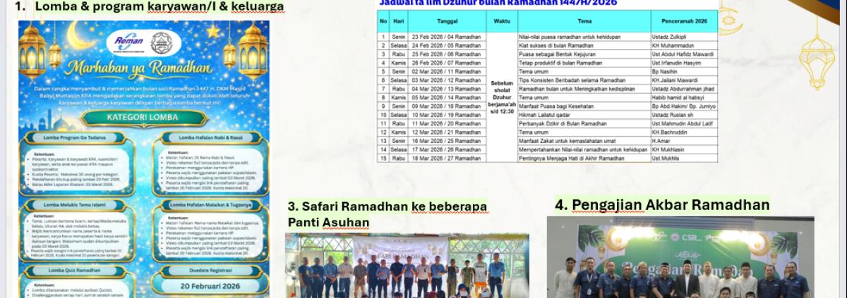 Melalui rangkaian kegiatan ini, KRAku tidak hanya menjalankan tradisi Ramadan, tetapi juga menanamkan nilai kebersamaan, kepedulian, dan spiritualitas dalam setiap aktivitasnya. Ramadan pun menjadi lebih bermakna, tidak hanya bagi internal perusahaan Karyawan & Kelurga, tetapi juga bagi masyarakat sekitar.