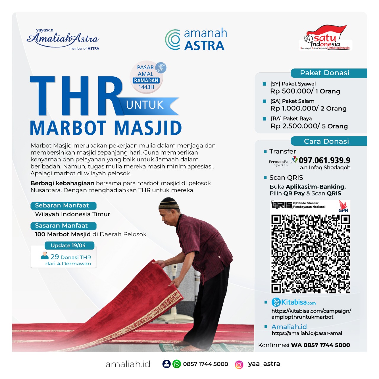 Di tengah Ramadan ini, Yuk! Siapkan hadiah spesial untuk mereka saat Hari Raya Idul Fitri nanti. Menghadiahkan THR untuk Marbot Masjid di wilayah pelosok Nusantara.