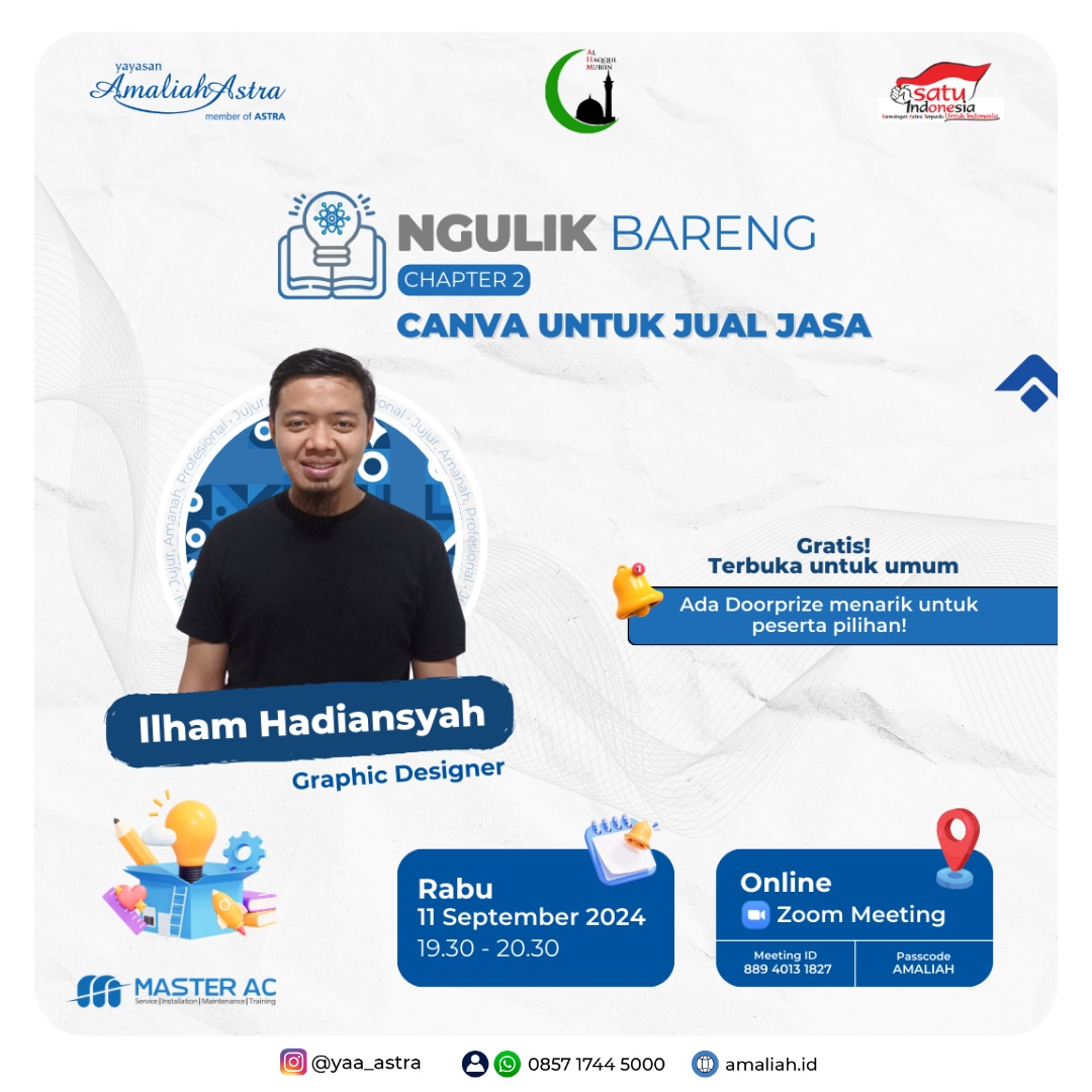 Ingin memaksimalkan potensi promosi jasa kamu dengan desain yang menarik? Yuk Bergabung dengan kami dalam "Ngulik Bareng Chapter 2" yang akan membahas cara menggunakan Canva untuk meningkatkan pemasaran jasa. Catat tanggalnya dan jangan lewatkan kesempatan ini!