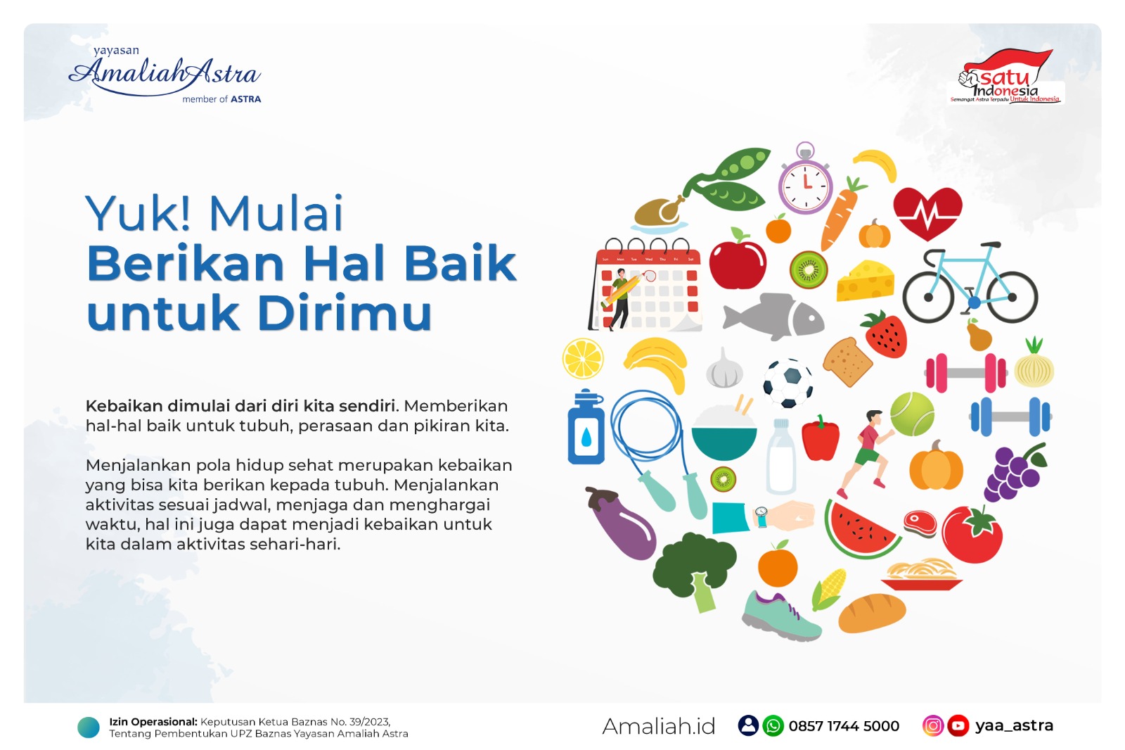 Kebaikan dimulai dari diri kita sendiri. Memberikan hal-hal positif untuk tubuh, perasaan dan pikiran kita.