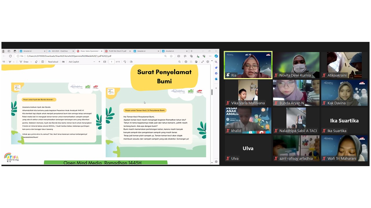 1 tahun yang lalu PublikAssalamualaikum. Hari ini Kak Athaya mengikuti kelas technical meeting untuk acara koding bersana Yayasan Amaliah Astra dan Astra Tech. Selanjutnya, Kakak Athaya dan teman-teman Nusantaranya akan mendapat pendampingan pelatihan membuat aplikasi dan game seru. Gak sabar untuk segera mengikuti rangkaian acaranya. 😍