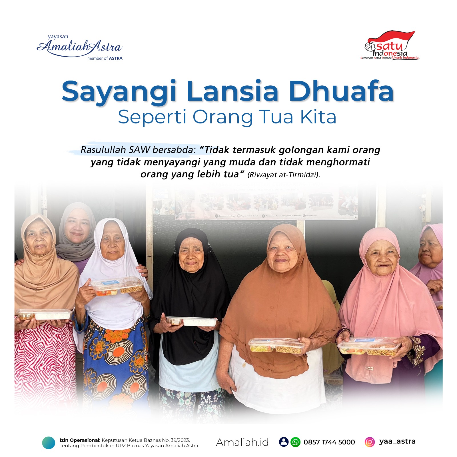 Menyejahterakan kehidupan mereka menjadi amal kebaikan yang juga memberi kebahagiaan bagi kita dan juga para lansia dhuafa.